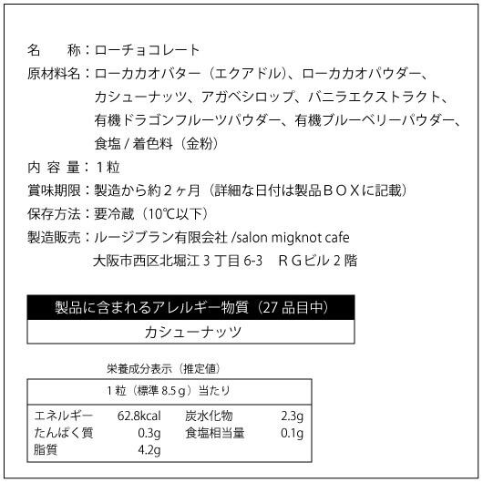 ※通常のチョコレートと違い、ローチョコレートは融点が高いためあたたかい場所ではとけやすくなります、お気をつけください。